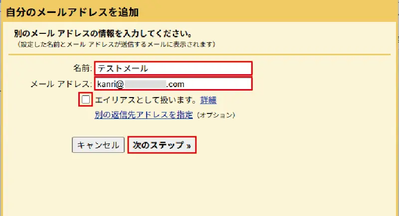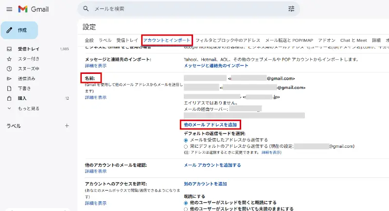- 「名前」の項目にある【他のメールアドレスを追加】をクリックする
