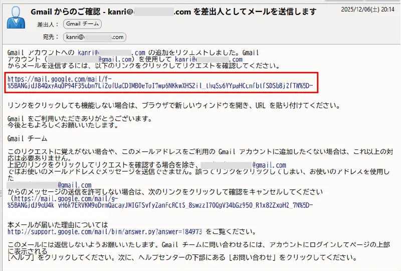 これで、独自ドメインメールが登録したGmailアドレス宛に転送されます。