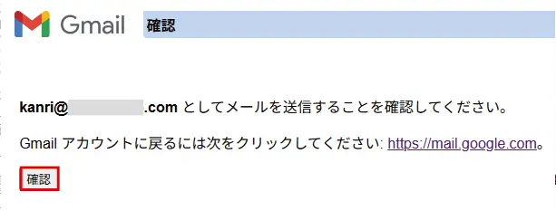 - Gmail確認画面が表示されたら【確認】をクリックする