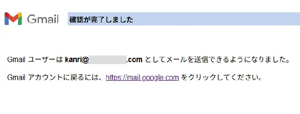 - Gmail確認が完了しましたと表示されたら設定完了です