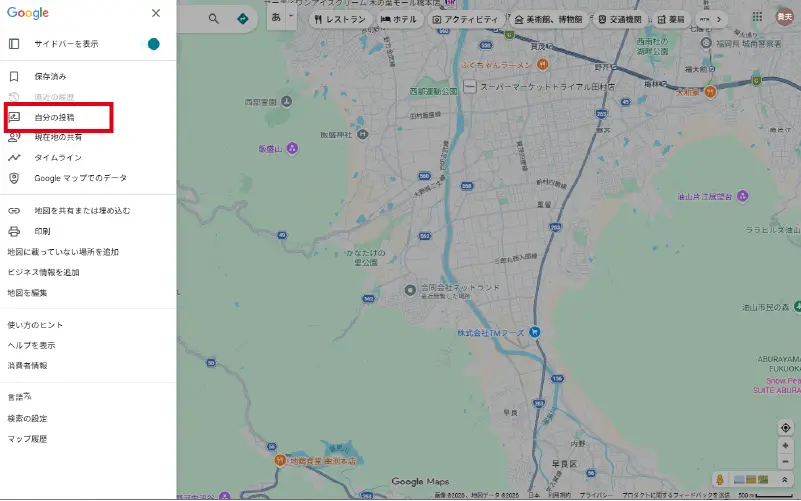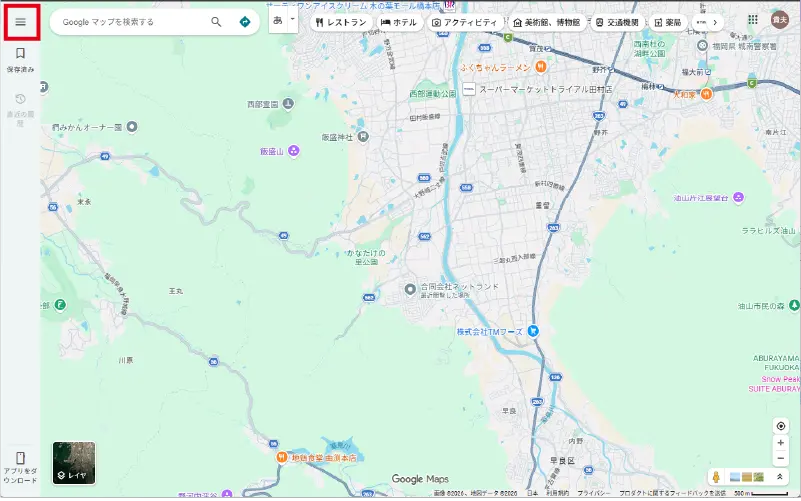 Googleマップを開き、左上の三本線をクリックして開きます。