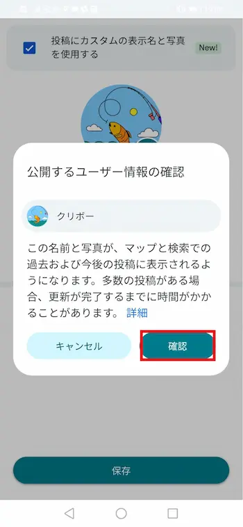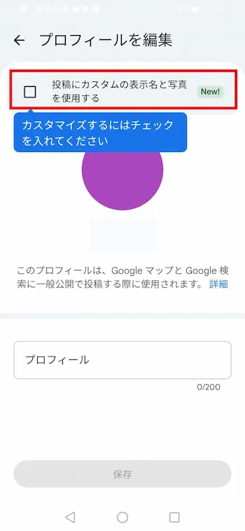 画面上部に表示されている「投稿にカスタムの表示名と写真を使用する」にチェックを入れます。