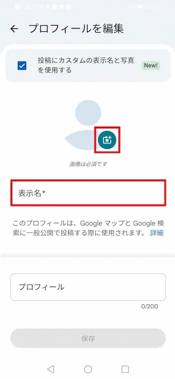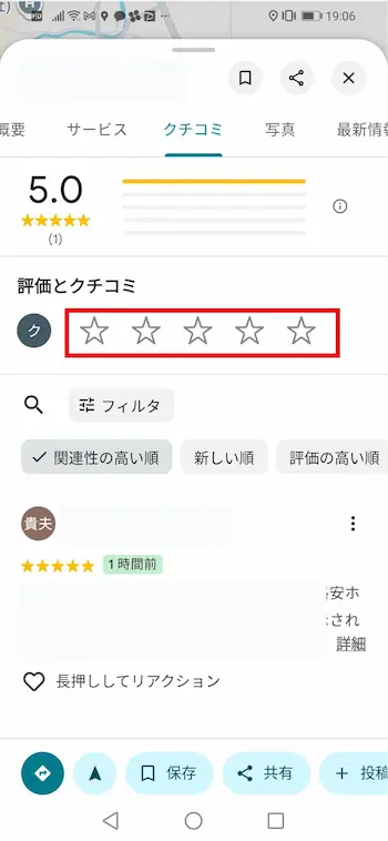 口コミを入力する画面に表示される名前を確認しましょう。この名前が先程、設定した名前になっていれば投稿名は、この名前が表示されます。